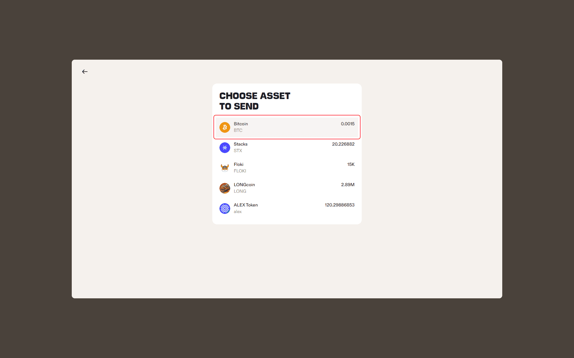 2. When prompted to choose an asset, select Bitcoin (BTC).